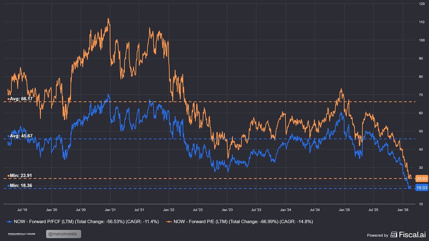 NOW is trading at its lowest valuations ever, significantly below its average multiples. While it may take a while for multiples to expand, and I am not sure if they will ever reach the heights of former valuation, it is very attractive here if you are looking for a SaaS survivor/thriver.